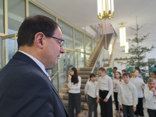 27.11.2025 - Schmücken des Weihnachtsbaumes im Bayerischen Staatsministerium für Finanzen und Heimat in Nürnberg